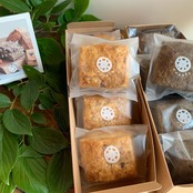 原材料:国産小麦 , バター(北海道産), 平飼い卵(新潟産), 有機豆乳 , 自然栽培米粉(新潟産), 焙煎玄米粉(新潟産), きび砂糖 , 大納言小豆 , 粉末ほうじ茶 , 塩 / ベーキングパウダー(アルミニウムフリー)